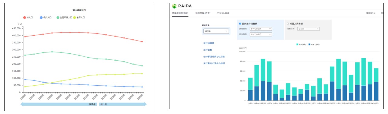 このようなRESASやRAIDAのグラフをAIが分析し、あなたの自治体にあった政策を提言します。