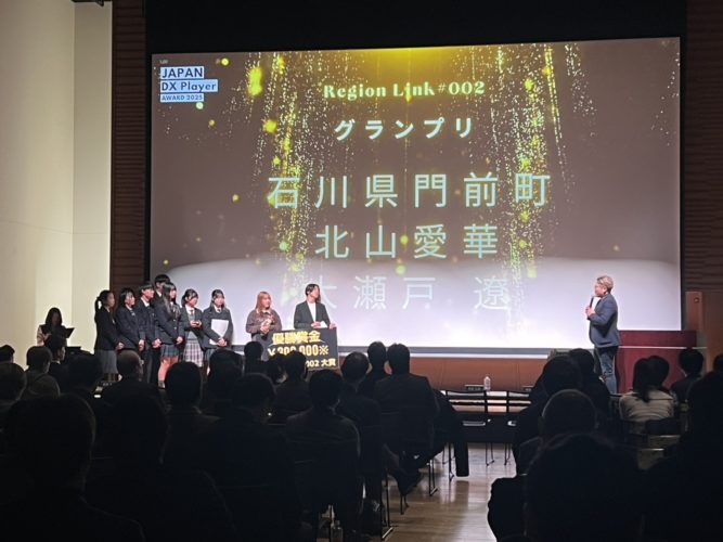産業部門賞、官公庁部門賞、学校部門賞、民間部門賞、サステナブル賞、スポーツ賞、農業賞、防災・災害部門賞などの各部門のAWARD発表が進行し、全国から寄せられた158件の応募の中から選出されたファイナリストによるプレゼン大会と表彰式が実施されました。 大ホールでのイベントと同時に、同じフロアの小ホールでも「REGIONLINK #002 Business Idea Contest」のイベントの同時開催を行い、2つのイベントを連携させることで、日本最大級のDXの祭典を実現しました。